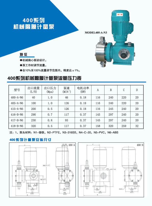耐普頓(NPD)計量泵系列 >> 耐普頓400系列