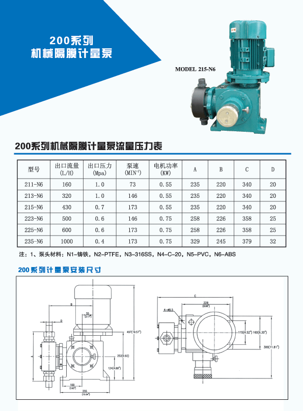 耐普頓(NPD)計量泵系列 >> 耐普頓200系列