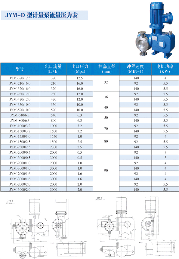 計(jì)量泵 >> JYM-D型液壓隔膜計(jì)量泵 最大流量為3000L/H,最高耐壓16Mpa